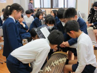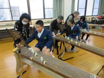 数年前に寄贈していただいたお琴もあり、一人一台使って「さくらさくら」を練習し、とても上手に演奏することができました。