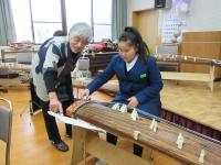 音楽の授業で学んでいる「邦楽」ですが、教科書の画像や映像だけでなく、この日は実物を間近に見て聞いて、体験までさせていただきました。