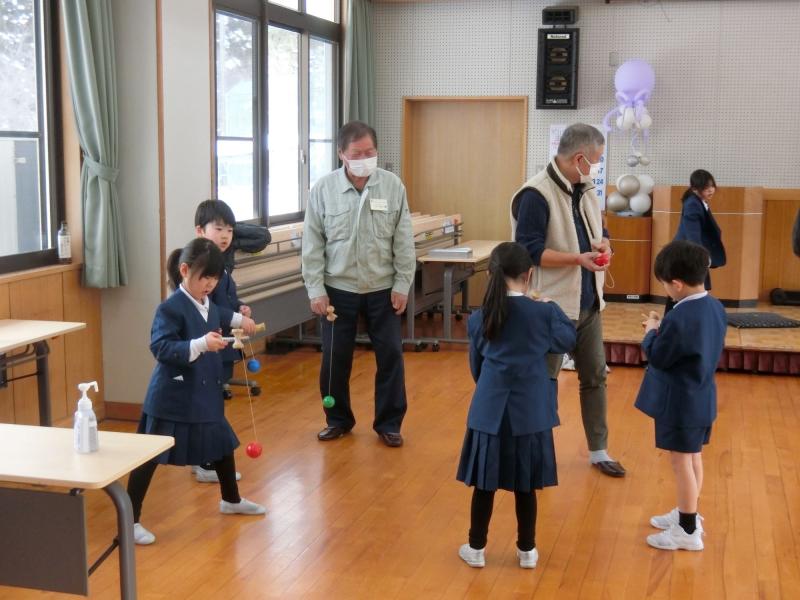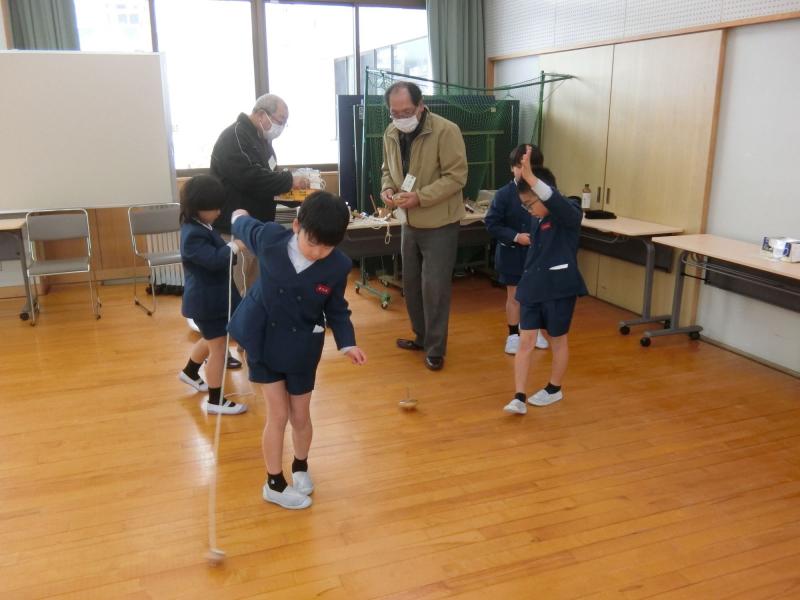 1年生のみんなが、地域の方々から昔遊びを教えていただきました。