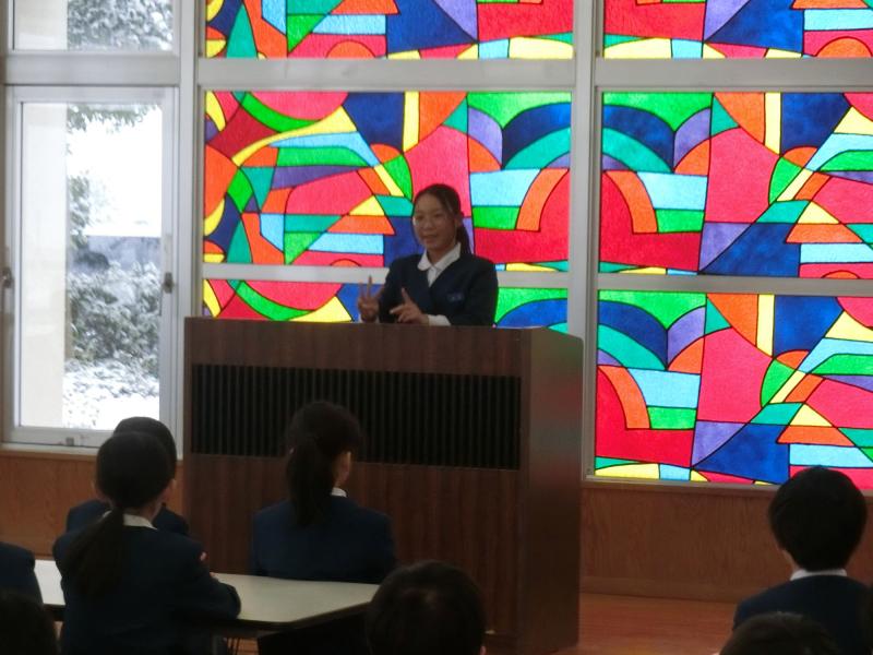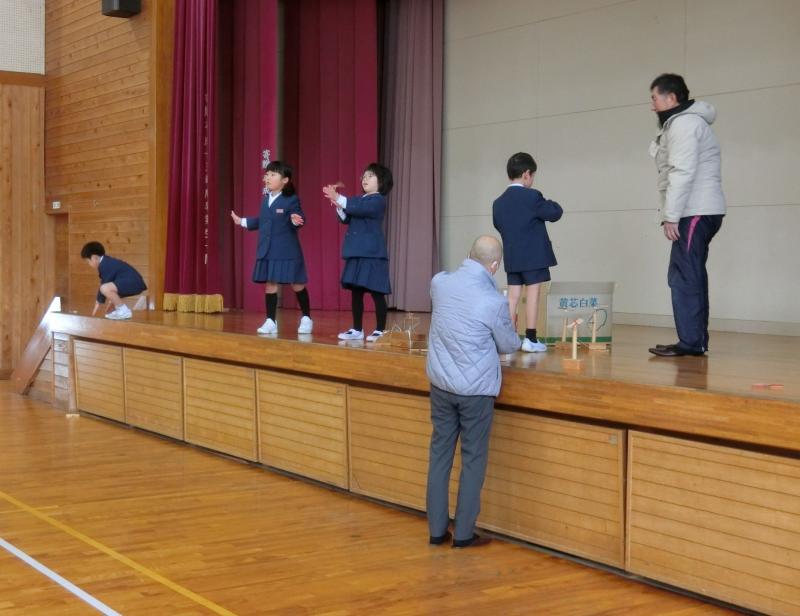 前日の23日(金)の帰り際に、職員室で最後のリハーサルをし、先生たちから激励を受けました。