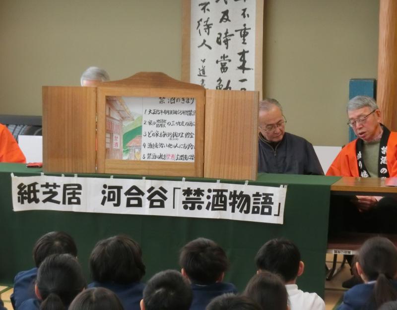 1月22日(金)に、3年生が「禁酒物語」の紙芝居を鑑賞しました。