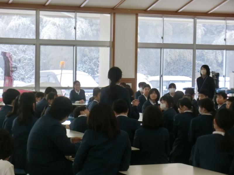 3年生のみんなは、河合谷地区に住んでいる人たちが、子どもたちのために禁酒をしてお金をためて、小学校を整備してくれたことにとても驚いていました。また、このことから、何かのために我慢することや、誰かのために力になること、思いやりの心のすばらしさを学んでいました。