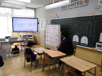 5月13日は、1年生がはじめてタブレットの使い方を学習しました。