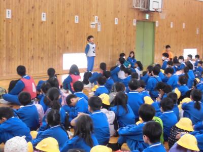 校長先生のお話の後、生活指導の先生から5月の生活目標についてお話がありました。