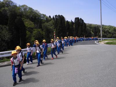 4月からスタートした縦割りグループのメンバーと一緒に歩き、お弁当を食べて、6年生が考えてくれた遊びをみんなで楽しみました。