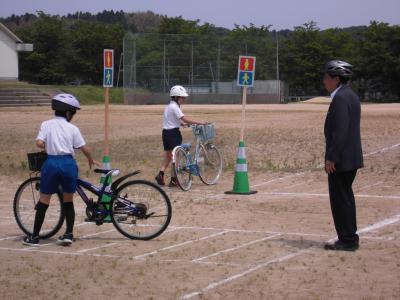 5月14日、津幡警察署の方や津幡町の生活環境課の方に来校していただき、3年生対象の自転車安全教室を実施しました。