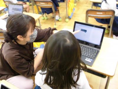 この日は、ICT支援員さんにサポートに入ってもらい、一人一人丁寧に教えてもらいました。