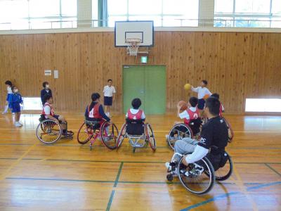 毎年お越しいただいている岩崎さんを今年もゲストティーチャーとしてお迎えし、4年生を対象に車いすバスケ体験学習を行いました。
