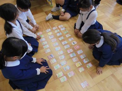 津幡町内の食べ物や、観光名所、旧跡、建物などを織り込んで作られたかるたで、全部で45枚あります。昨年度は町のかるた大会が行われ、本校からもたくさんの児童が参加しました。今年度も町の子ども会が主催となって大会が行われる予定です。
