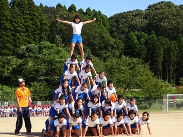 今年は「全力・協力・集中力で心をひとつに」の児童会のスローガンのもと、赤白2チームに分かれ、競技や演技に全力で取り組みました。