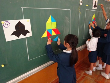 子どもたちは、校舎内に設けられた11のミッション(ゲームやクイズなど)に、ふれあいグループで協力して挑戦しました。