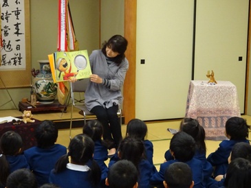 今年度は世界のお話だけでなく、津幡町の民話「峰山神(もんにゃま)のひひ退治」もお話していただきました。