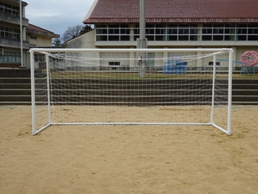 河北縦貫道の工事携わっている建設会社から、サッカーゴールとポータブルアンプを寄贈していただきました。大幸建設株式会社様、株式会社西島組様、株式会社中農組様からです。