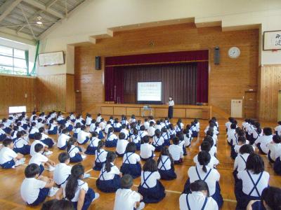 体育館にもそよそよと涼しい風が入り、1限目の始業式では、元気に校歌を歌いそして静かに先生方の話を聞く子どもたちの様子を見ることができました。