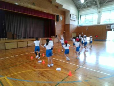 3年生は振り付けを覚え、体を目いっぱいに使い、踊りの練習に取り組んでいました。