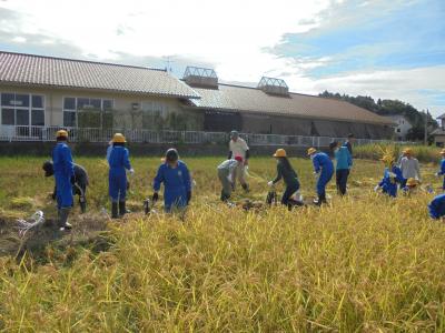 7月の大雨被害やこの夏の猛暑で稲の成長が心配されたのですが,すくすくと育ち,今日無事に稲刈りをすることができました。