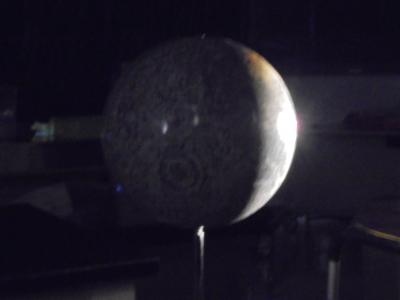 理科室を暗室にし,月の模型と光源装置を使って,月の位置を移しながら形が変化していく様子を観察します。