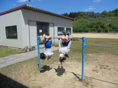 また、今日は晴れて暖かく、外の鉄棒で遊んでいる子たちもたくさんいました。
