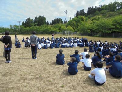 今日は火災を想定した避難訓練を行いました。発生場所を確認し,それに合わせた避難経路を使ってグラウンドに避難します。「おはしも」の約束を守り,真剣に訓練に参加してこそ,まさかの事態に対応することができます。