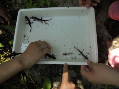 貴重なハコネサンショウウオやアカハライモリも見つけることができました。