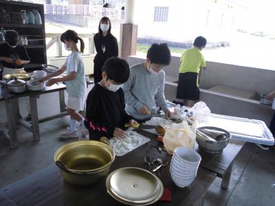 今日のメインの活動は「野外炊飯」です。カレーライスを作りました。火起こし、まき割り、食材切り、米とぎ、炊飯などなど、みんなで力を合わせなければならないことばかりです。