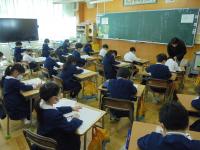 2限の始業式のあと、3・4限は校内書き初め大会が行われ、どの学年の子も真剣に取り組んでいました。冬休みの練習の成果か、どの作品もとても上手でした。(作品は11日から当ホームページに掲載します。パスワードは本日配付いたしました学校だよりに記載されています。)