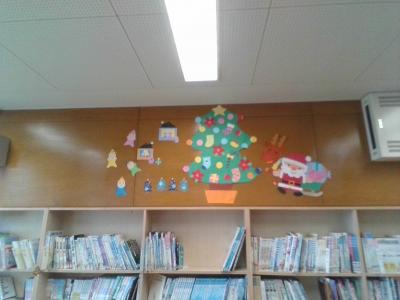 学校の図書室の中は、クリスマスの装いです。学校ボランティアのみなさんがきれいに飾り付けをしてくださいました。