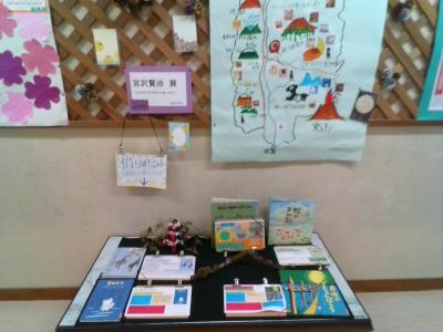 図書室前には6年生が国語の学習の際に作成した、宮沢賢治のコーナーもあります。