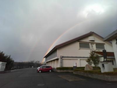 今日の下校時に出ていた虹です。二重(ひょっとしたら三重)のきれいなアーチを描いていました。