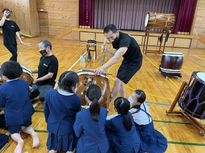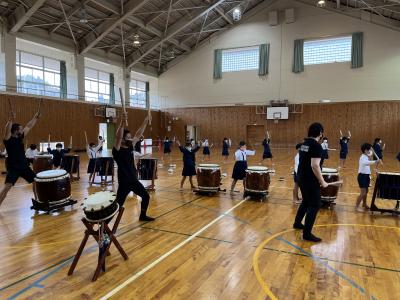 1限は学校集会、2限は津幡町で活動されている朝霞太鼓さんのメンバー9名をお招きし、太鼓演奏会を行いました。6年生も参加し、会場は大変盛り上がりました。迫力ある大太鼓の大きな音、リズミカルに叩かれる締太鼓など本当の太鼓の演奏に触れ、子どもたちにとってとても良い体験となりました。