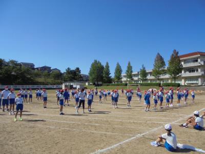 雲ひとつない秋空のもと、運動会前最後の全体練習がありました。これまでの練習を活かし、最後までしっかり取り組むことができました。