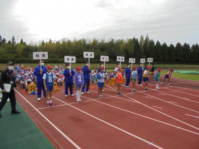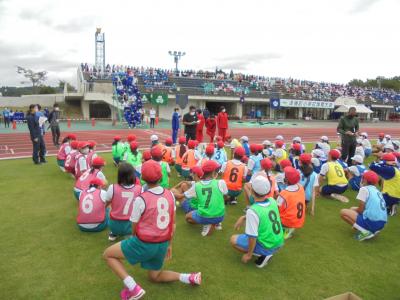 今日、津幡運動公園陸上競技場で「津幡町小学校体育大会」が行われました。津幡町すべての小学校の6年生が一同に会し、競技を行います。
