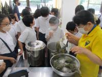 今日は、GTに神崎さん(森林活用の先生)をお迎えし、草木染め体験を行いました。木や草を煮た煮汁を使い、ガーゼハンカチを染色しました。コミュニティセンターの厨房は、森の良い香りに包まれました。