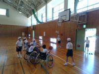 今日は実際に車いすに乗ってバスケットボールの試合をしたり、車いすの方を運ぶ福祉車両を見せていただいたりしました。暑い中でしたが、子どもたちにとって貴重な体験となりました。ありがとうございました。