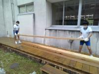 本校の中庭にはウッドデッキがあるのですが、今日は残りの部分の増床を行いました。