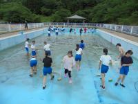 みんなで協力したおかげで、すっかりきれいになりました。このあと水をため、20日(月)にプール開きを行う予定です。