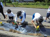 今年も、環境委員会のみんなが中心となって、校門横の花壇にマリーゴールドの苗を植えました。全校から多くの子たちが苗植えの手伝いに来てくれました。みんなのおかげで色とりどりのマリーゴールドをきれいに並べることができました。どんどん大きくなっていく花が毎日見られますね。