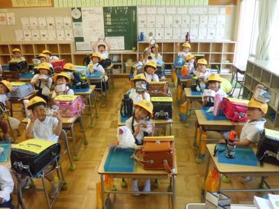 生活科の授業で、1年生が学校内の探検をしました。普段は入ることのない校長室や理科室、ランチルームなどを回ったり、非常口がどこにあるか探したりしました。教室へ入るときのあいさつや廊下の歩き方など、グループそろってルールを守って探検することができました。