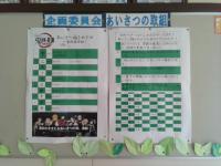どこかで見たような市松模様の写真です。今年も子どもたちから出たアイデアをもとに、あいさつ運動を行います。その名も「あいさつ柱をめざせ〜無限挨拶編〜」です。ブームよ再びということで、子どもたちは元気にあいさつ運動に取り組んでいます。