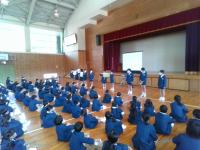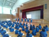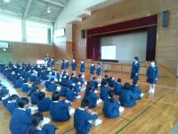今月の全校集会で、各学級の学級代表の紹介、各委員会の委員長の挨拶がありました。