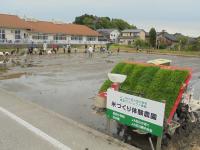 今日は5年生が田植え体験学習をしました。いつもお世話になっている田んぼの先生の大浦さんから植え方を教わった後、田んぼに入って苗を植えていきました。子どもたちはすぐに慣れて、どんどん上手になっていきました。今日は英田公民館やくらし安心ネットワークの方々など、多くの方に手伝っていただきました。ありがとうございました。