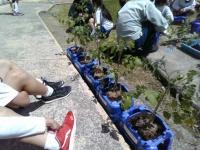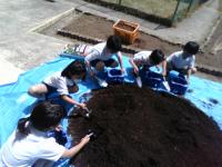 今日は2年生が学校園でミニトマトの苗植えをしました。いつもお世話になっている畑の先生浄光さんにお越しいただき,鉢に植えていきました。ミニトマト以外にもなす,ピーマン,キュウリも植えました。大きくなるのが楽しみですね。