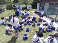 1,2年生は動物園で猿などを観た後「松葉台」で、3,4年生はMISIAの森で森林ボランティアの方々と植物ビンゴなどをした後「緑化の広場」で、5,6年生もMISIAの森で森林ボランティアの方々に植物や自然のことについて教えてもらった後「子供の広場」で、それぞれの場所でお弁当を食べたり、遊んだりしました。