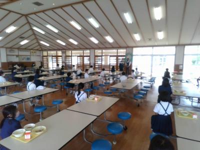 2022年5月12日 13時06分今年は3年生と5年生がランチルーで給食を食べています。ゆったりスペースを取り、みんなで美味しく給食をいただいています。