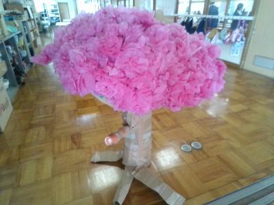 写真は5年生が作成した桜の木です。まるで本物のようです。