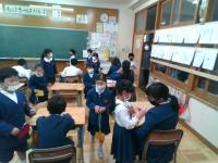 2022年3月3日 11時06分一週間延期をした「6年生を送る会」ですが、明日本番を迎えます。今日の朝、1年生がメダルを、2年生が招待状を持って6年教室におじゃましました。