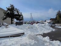 週末に降り積もった雪。今日も雪が心配されましたが、降雪のピークは過ぎ昼過ぎからは晴れ間がのぞきました。日曜日に除雪していただいたこともあり、玄関前は雪が溶けアスファルトも見えています。子どもたちは外で元気に雪遊びをしていました。