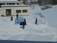 今日は晴天に恵まれ、気温も上がりました。少しずつ春に近づいている感じがします。グラウンドの雪もすっかりとけ、子どもたちが元気に走り回る姿が見られました。