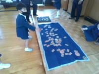 1年生が、地域の方々に教えていただきながら、いっしょに昔遊びをしました。