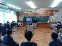 教室では、さらにパソコンを大型モニターにつなぎ、みんなで視聴しました。
